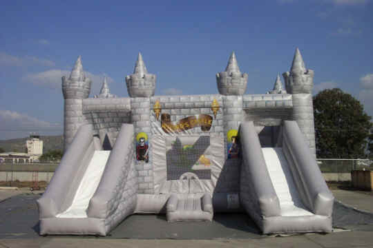 The Camelot’s Castle Bounce is a great bounce & slide combination inflatable for medium to large events. It has a large capacity that will allow 15 - 20 children to play on it at once. This combination inflatable is great fun to bounce in or slide down either of the two 12’slides. |